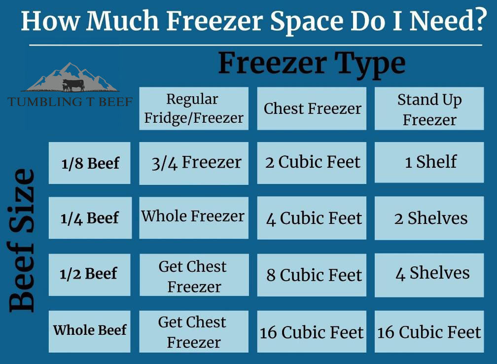 Freezer Space: This 1/4 Beef will require approx. 3-4 cubic ft. of freezer space.